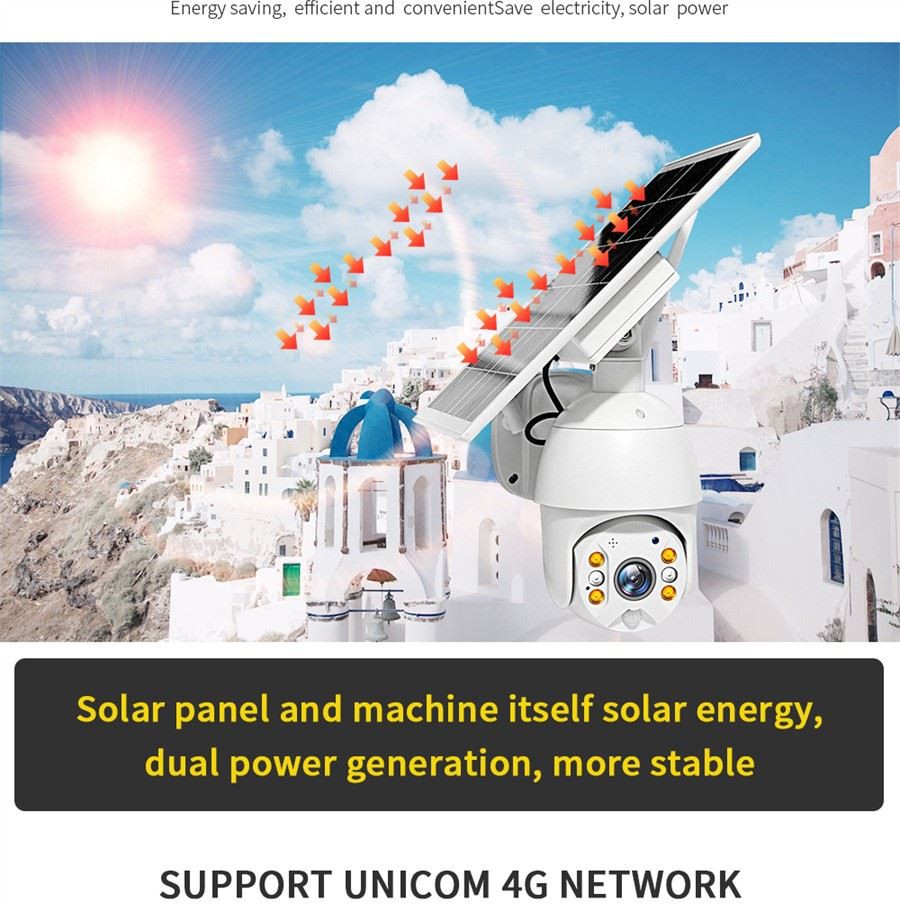 1. 100% traadita ja päikeseenergial töötav--- 4g veekindel päikesekaamera, 100% traadita ja lihtne paigaldada. Päikesepaneeli juhtmevaba turvakaamera pärast 3 tundi otsest päikesevalgust toetab selle energiatarbimist ühe päeva jooksul. 6tk laetav sisseehitatud 18650 aku kuni 20000mAh pikendab oma vastupidavust aega, teil on vabadus seda kasutada ja ei pea muretsema ilmaga. 365 päeva Katkematu toiteallikas, et kaitsta teie kodu turvalisust.